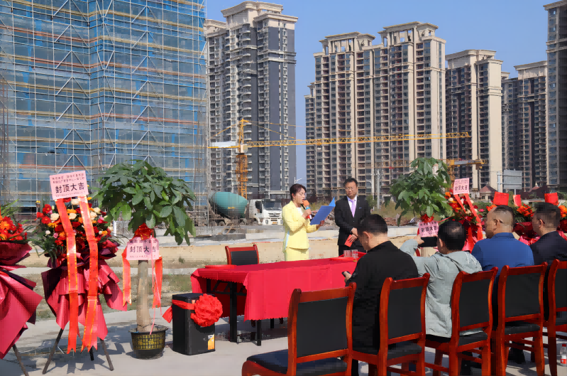 而后,施工單位湖南營田建筑有限公司項目經理陳堅為封頂儀式致辭。陳經理向參與項目建設的各單位表示了感謝,且對千盟的發展表達了衷心的祝福!